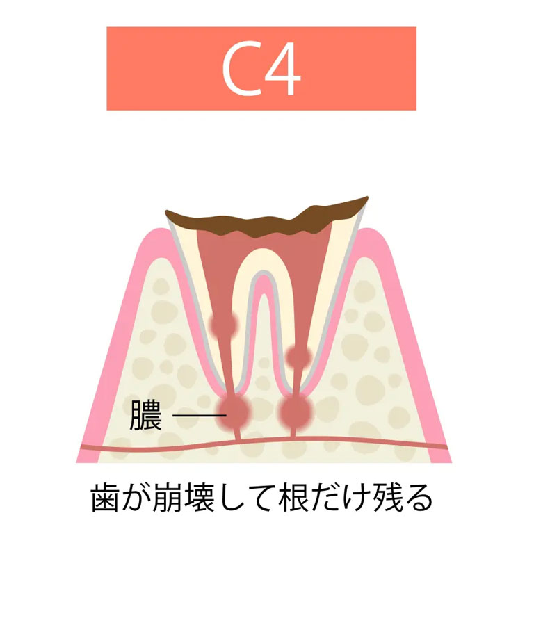 C4:歯冠が崩壊した状態